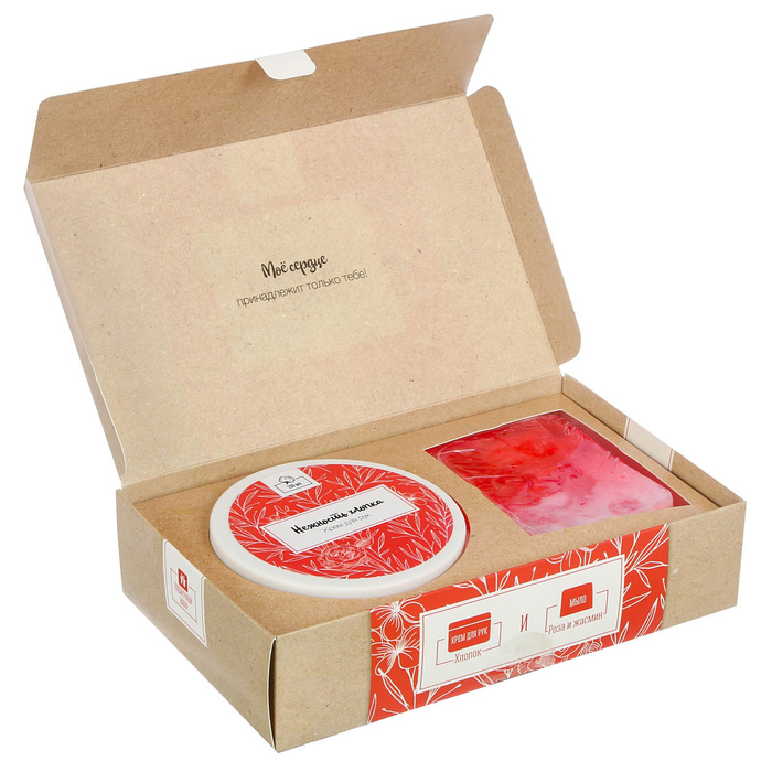 Подарочный набор "Люблю!": косметическое мыло, крем для рук с ароматом хлопка