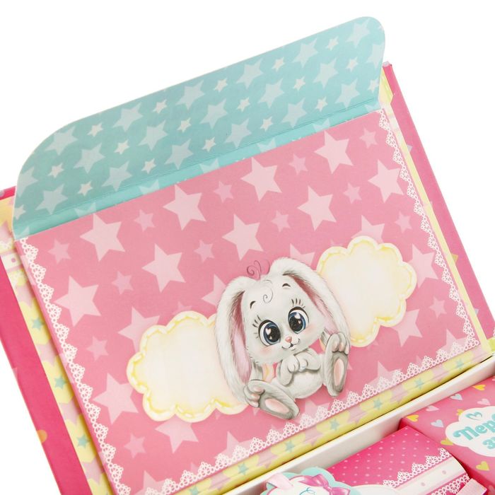 Конверт и коробочки сберегут рисунки, зубик и локон. Только представьте, как здорово будет спустя годы взглянуть на них с уже повзрослевшим сыном или дочкой. В паспорте крохи есть свободные поля для записи первых данных о ребёнке.