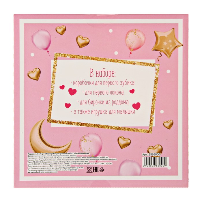 Подарочный набор "Наша маленькая принцесса": набор памятных коробочек и погремушка