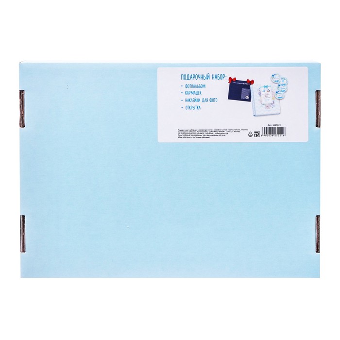 Подарочный набор "Наше маленькое счастье": фотоальбом на 10 магнитных листов, кармашек на кроватку на 2 отделения, наклейки для фотографирования и открытка