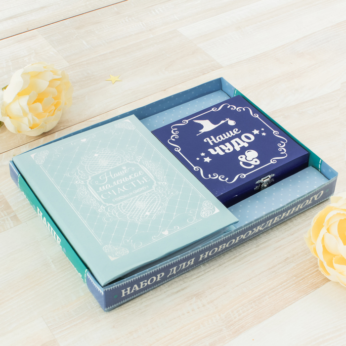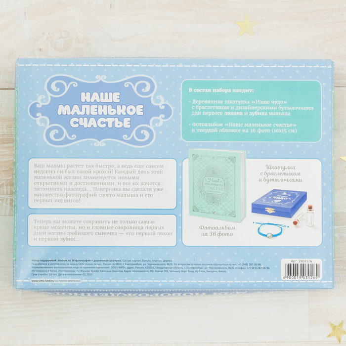Подарочный набор "Наше маленькое счастье": фотоальбом на на 36 фото и шкатулка с браслетом и бутылочками для хранения