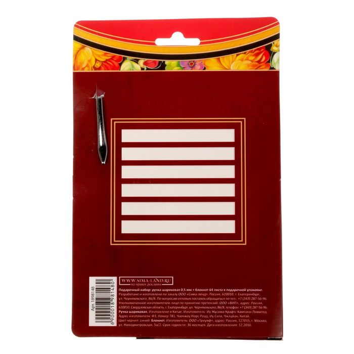 | Составляющие набора | Блокнот |