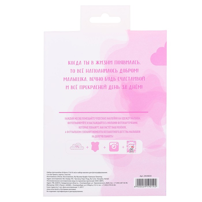 Подарочный набор "Подарочный набор малышки": наклейки для фотографирования (11 шт.), фотоальбом на 36 фото