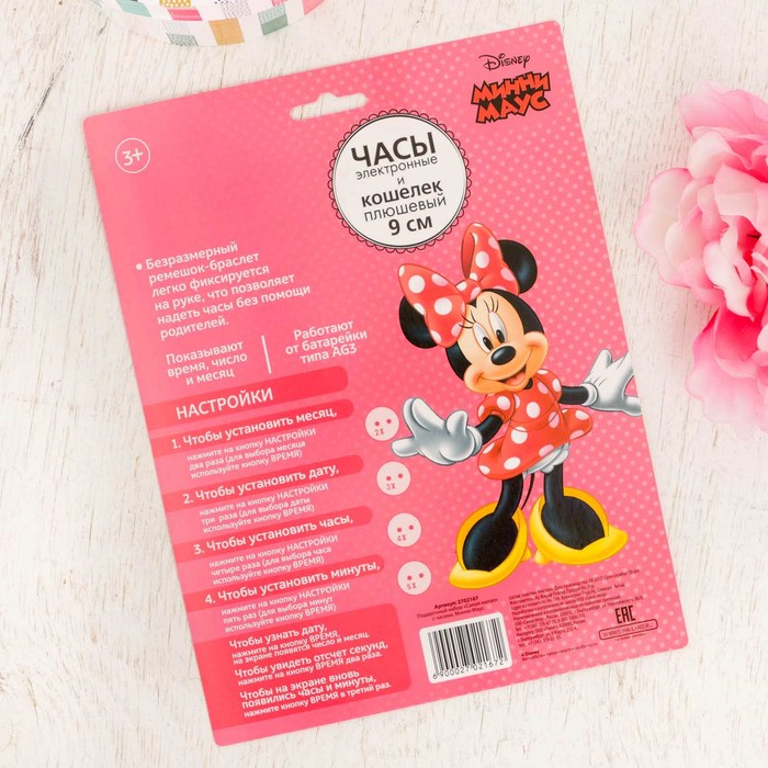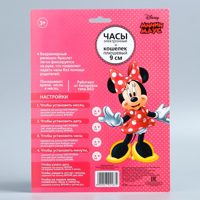 Подарочный набор "Самая милая" часы + кошелек, Минни Маус