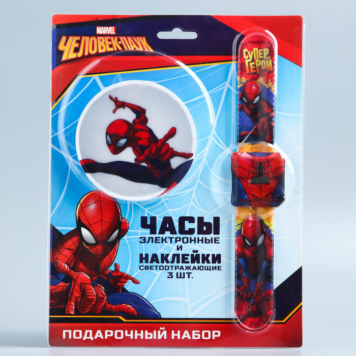 Подарочный набор "Супер герой" часы + светоотражающие наклейки, Человек-паук