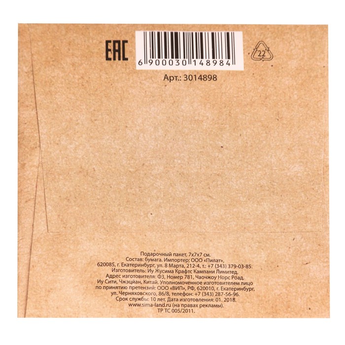 Любой подарок начинается с упаковки. Что может быть трогательнее и волшебнее, чем ритуал разворачивания полученного презента. И именно оригинальная, со вкусом выбранная упаковка выделит ваш подарок из массы других. Она продемонстрирует самые тёплые чувства к виновнику торжества и создаст сказочную атмосферу праздника. Подарочный Пакет «Тебе», 7 × 7 × 7 см — это то, что вы искали.