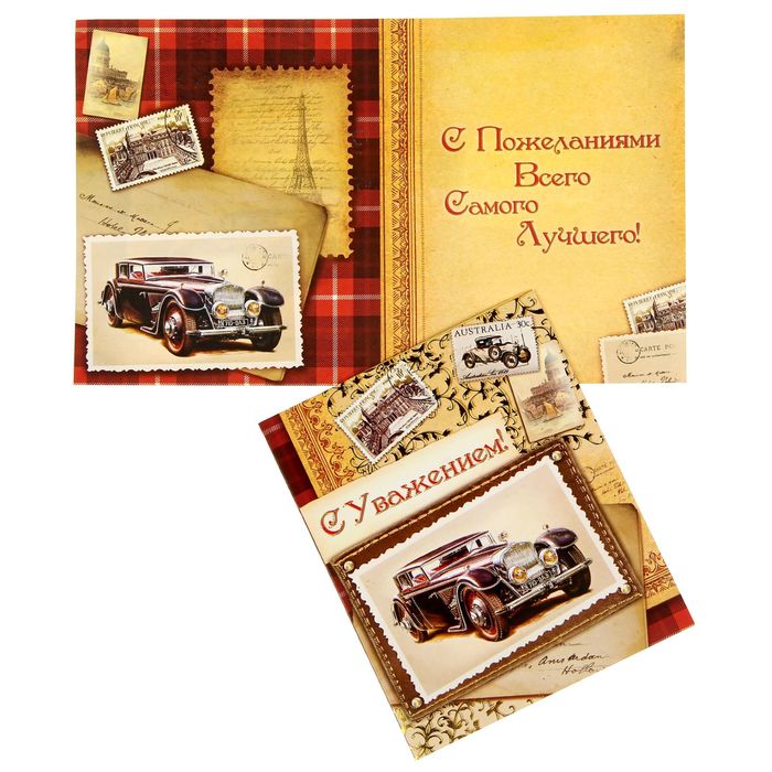 Подарочный складной набор. Коробка и открытка "Мужская клетка"