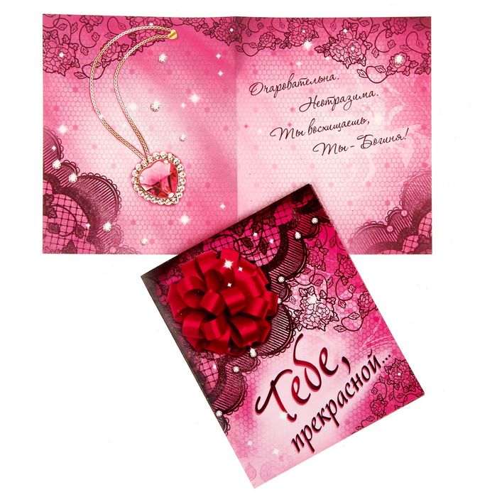 Очаровывайте милых вашему сердцу дам с помощью оригинально оформленных презентов. Мы добавили в комплект к коробке «Только для тебя» открытку с нежными пожеланиями и розовый пышный бант для гармоничного завершения упаковки.