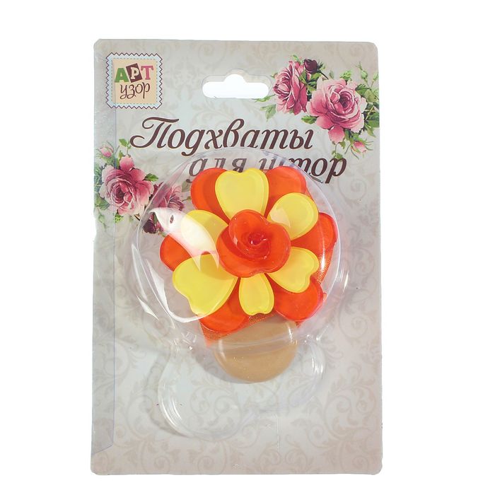 Подхват для штор на ленте "Цветок жарки", цвет оранжевый