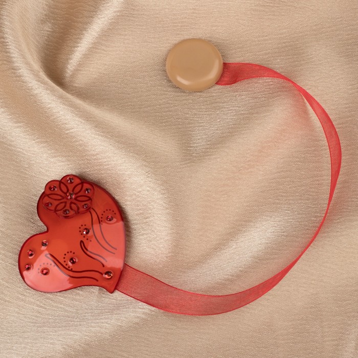 Подхват для штор на ленте "Сердце цветочное", цвет красный