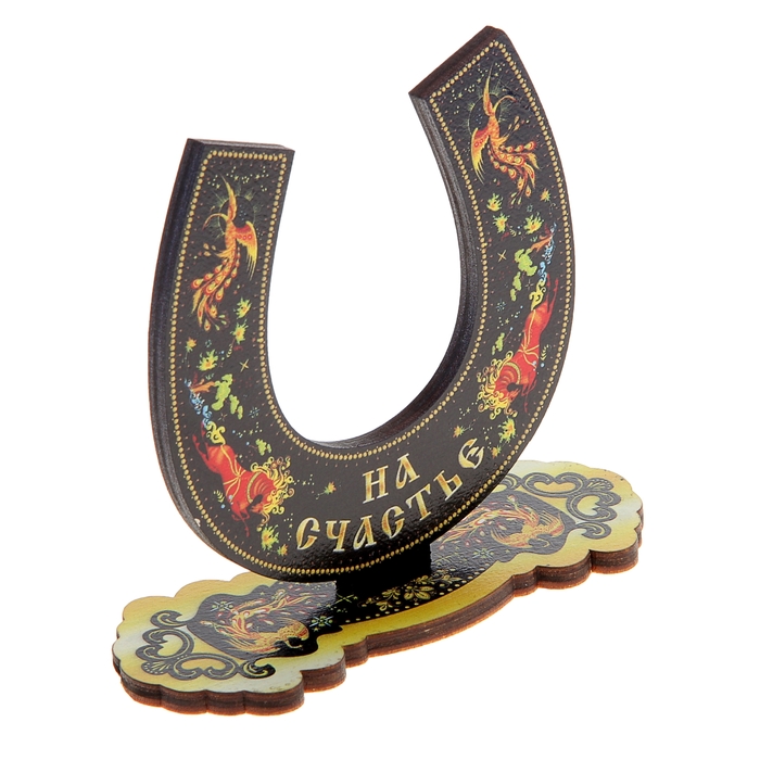 Подкова «На счастье/на удачу», палех: жар-птицы, настольная, двусторонняя, 5×12×10 см