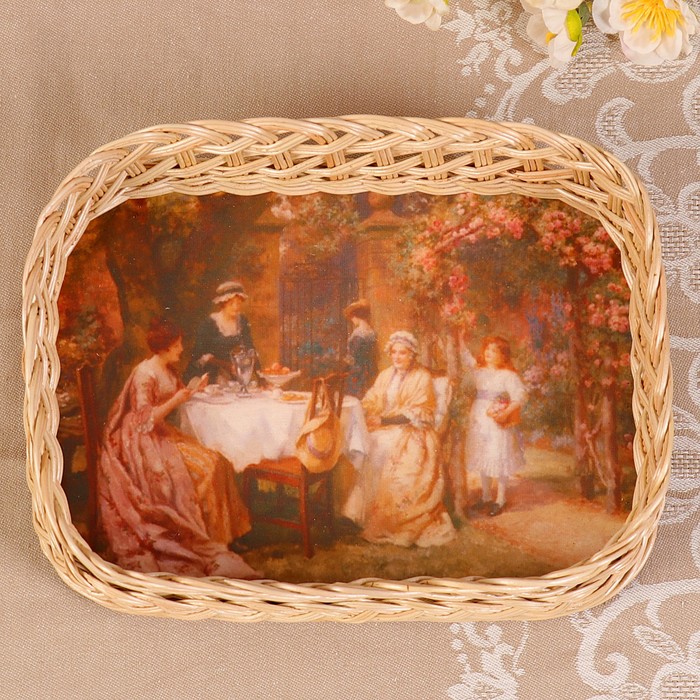 Поднос «Чаепитие», ажурный, плетёный, высокие бортики, 18х24х6,5 см, ива