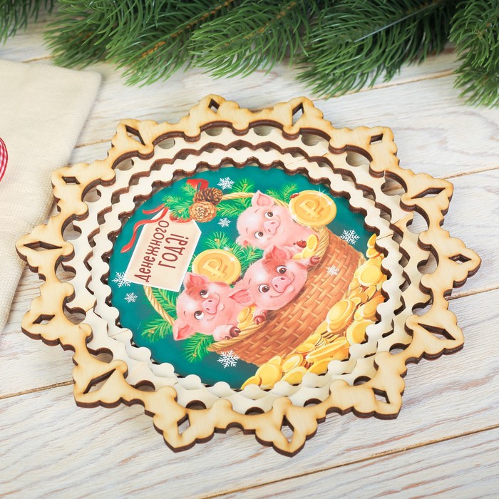 Поднос деревянный "Денежного года", d=21 см