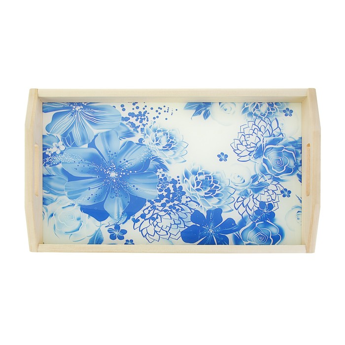 Поднос для завтрака "Васильки", стеклянная поверхность, 50х7х29,5см