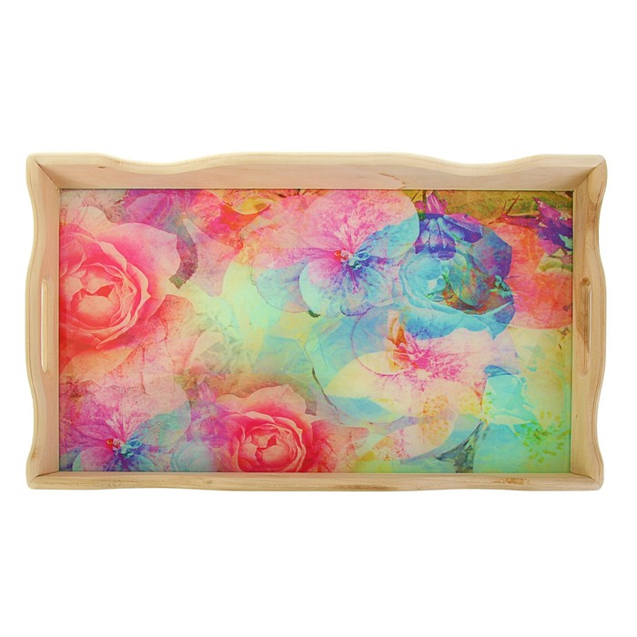 Поднос фигурный для завтрака "Цветы", стеклянная поверхность, 49х6х28,5см