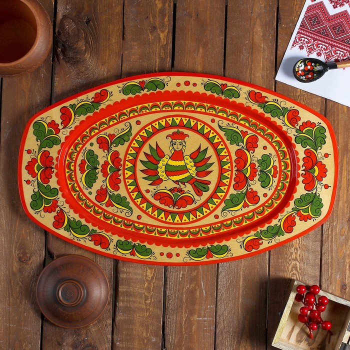 Поднос, овальный, 29×21×1,5 см, пермогорская роспись