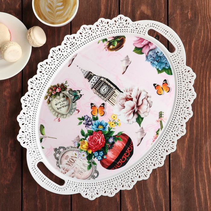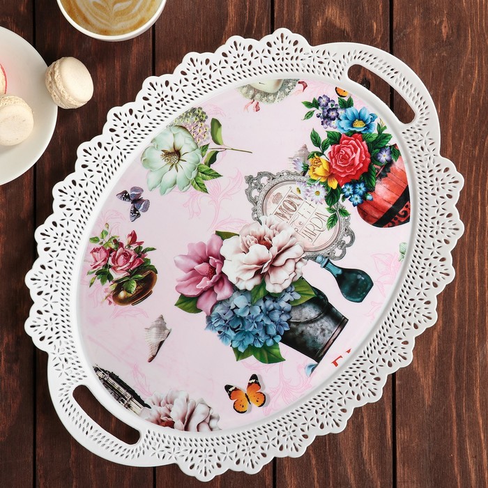 Поднос овальный "Ажурная кайма", цвета МИКС