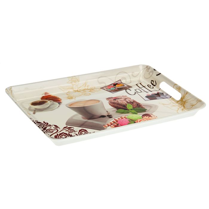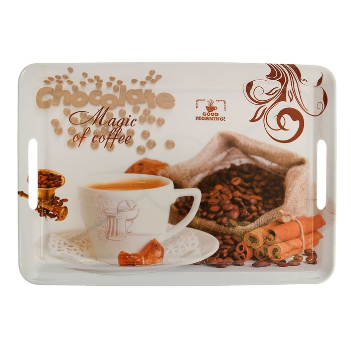 Поднос прямоугольный 35х25х3 см "Кофеман", цвета МИКС