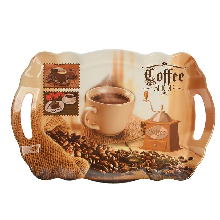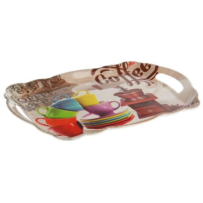 Поднос прямоугольный 38х25х3 см "Кофешоп", цвета МИКС