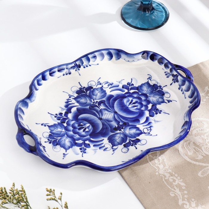 Поднос с ручками «Лето», гжель, кобальт