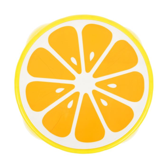 Также подставку допускается использовать как обычный табурет. Крохе понравится его новый стульчик благодаря яркому цвету и рисунку в виде сочного фрукта на сиденье.