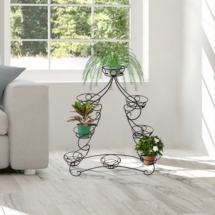 Металлическая подставка для цветов впишется в классический дизайн квартиры, загородного дома или дачи.
