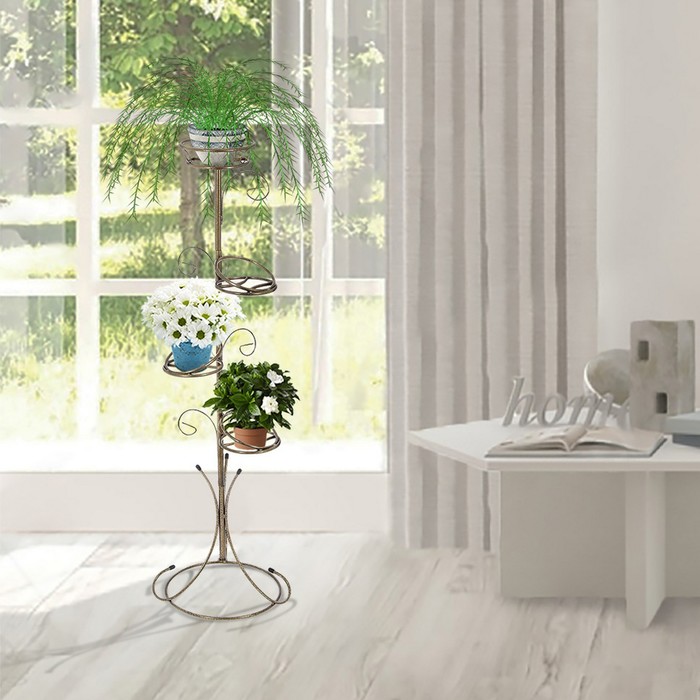 Металлическая подставка для цветов впишется в классический дизайн квартиры, загородного дома или дачи.