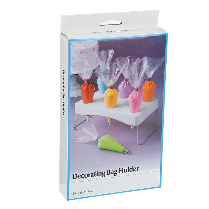 Специальная подставка сделает хранение кондитерских мешков и гвоздей удобным и поможет защитить кухонные поверхности от попадания крема, мастики и муки.