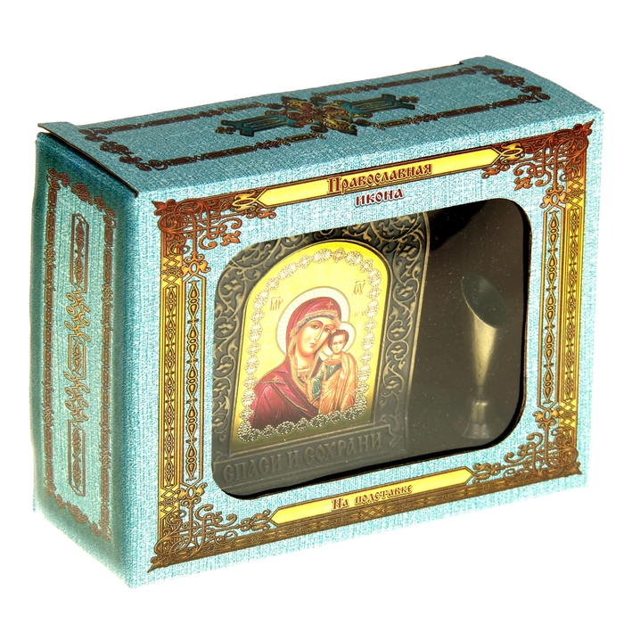 Подставка для ручки с иконой "Казанская икона Божией Матери" - состоит из деревянной основы к которой прикреплена металлическая рамка с изящным орнаментом. Икона, которая вклеена внутри рамки, полностью соответсвует канонам Православной Церкви. Рядом с рамкой на деревянной подставке находится место для ручки или карандаша. Упакована в оригинальную коробку с PVC окном. Такая подставка для ручки относится к VIP сувенирам, выглядит богато и будет прекрасным подарком подчеркивающим духовность дарителя и получателя.