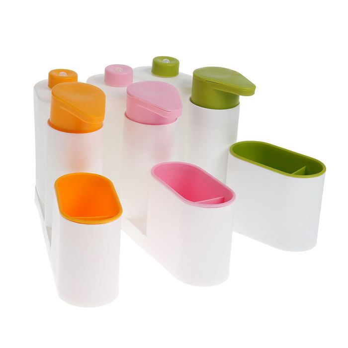 Подставка для ванных и кухонных принадлежностей с дозатором и бутылкой, цвет МИКС