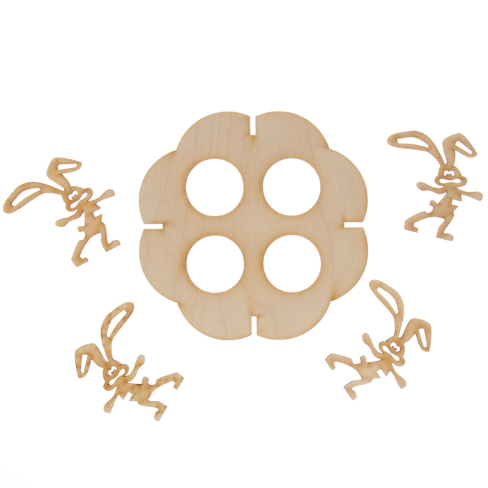 Подставка пасхальная из фанеры для 4 яиц "Кролики-2" (набор 5 деталей) 15х4х15 см