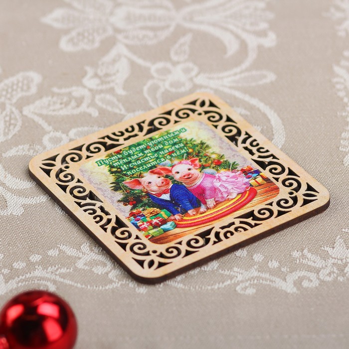 Подставка под горячее «Хрюши под ёлкой», резная, 9×9 см