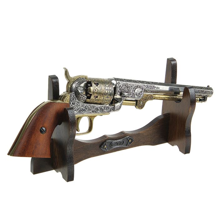 Настолько любите холодный блеск оружия, что сувенирные арбалеты, пистоли и мечи, выполненные под старину, - привычные в вашем доме предметы? Позаботьтесь о том, чтобы их было где удобно и эффектно разместить! На этой элегантной деревянной подставке, выполненной на итальянской фабрике Medio Evo, идеально разместится пистоль – копия грозного и смертоносного оружия. Такая композиция, размещенная в просторной гостиной, домашней библиотеке или личном кабинете, придаст окружающему пространству величественный и аристократичный вид.