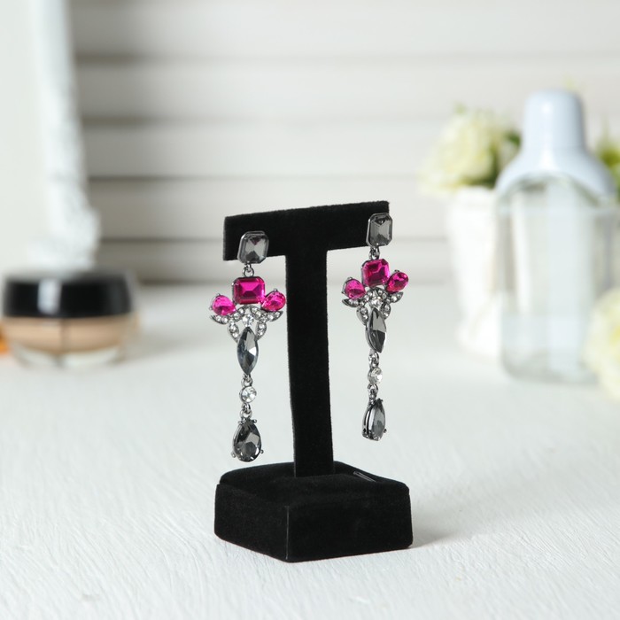 Подставка под серьги и кольцо, бархат, цвет чёрный 4,5*4,5*11