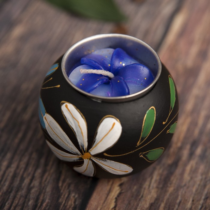 Подсвечник из мангового дерева "Голубой цветочек" 6х6х5 см