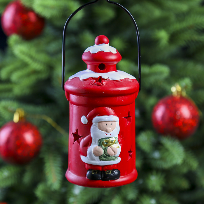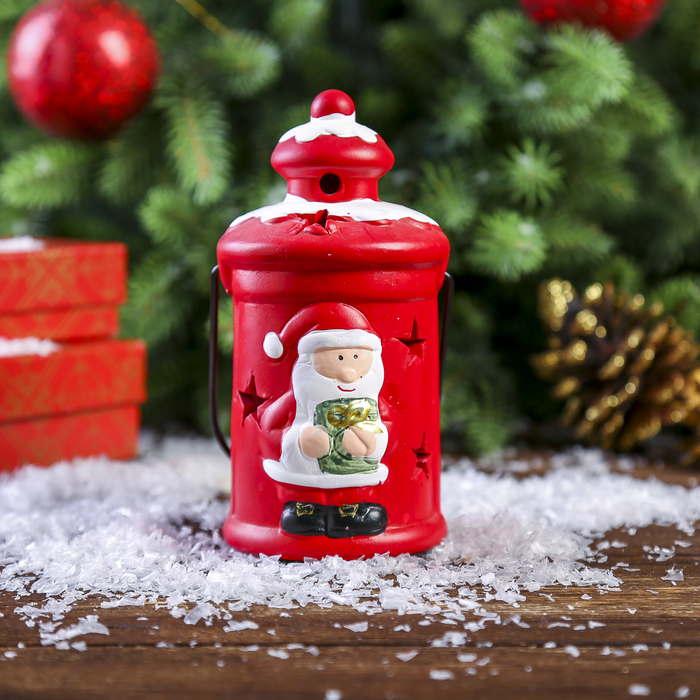 Подсвечник керамика "Фонарик с ёлочкой/Дед Мороз" 12,7х7х7 см