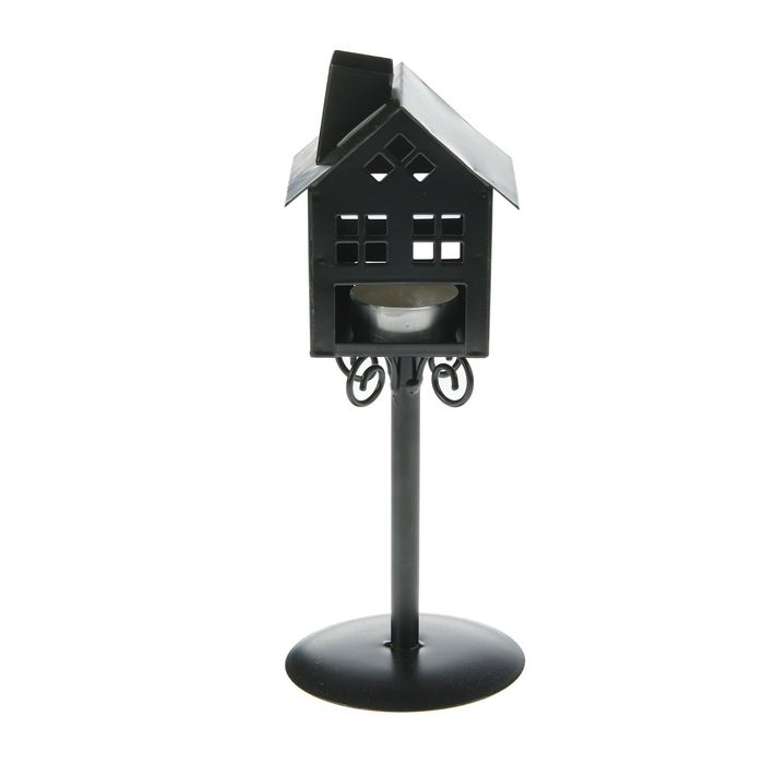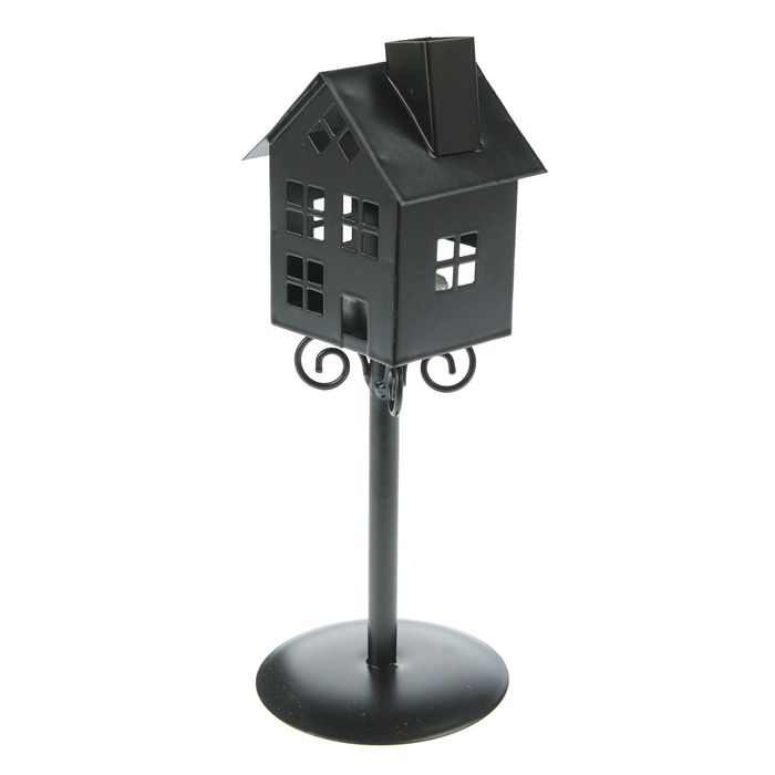 Подсвечник металл 1 свеча "Домик" чёрный 23х9х9 см