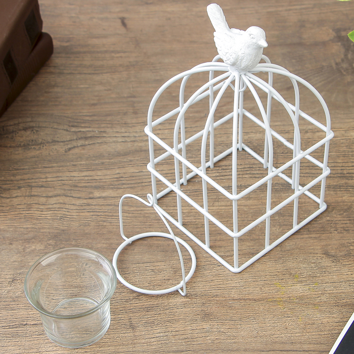 Подсвечник металл 1 свеча "Птенчик на клетке" белый 17,5х10х10 см