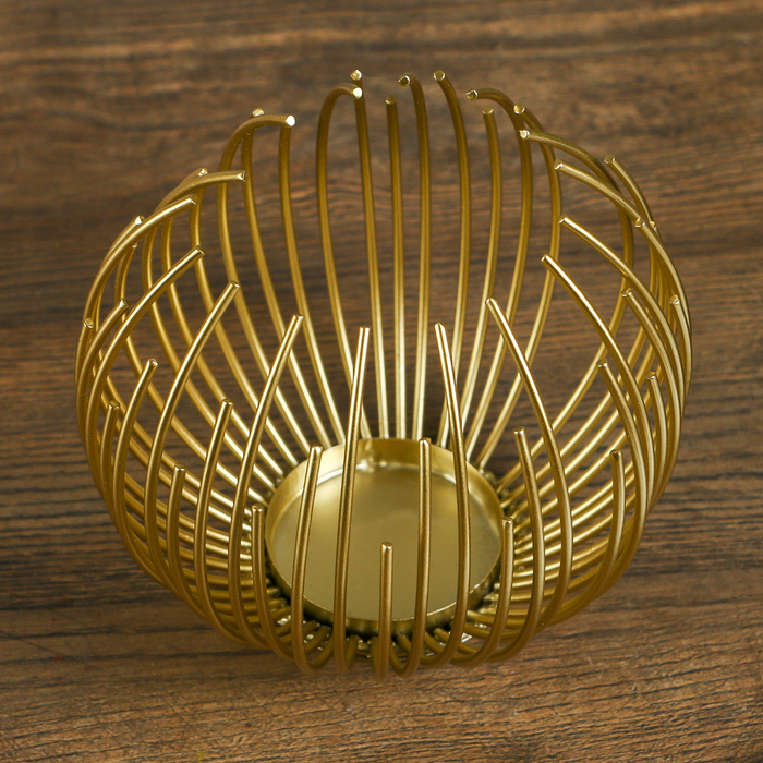 Подсвечник металл 1 свеча "Шар из прутьев" золото 11х13х13 см