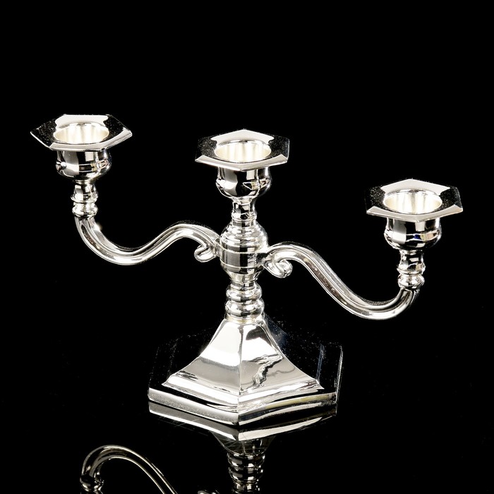 Подсвечник металл на 3 свечи "Чёткие линии" цвет серебро 12,5х21,5х10 см