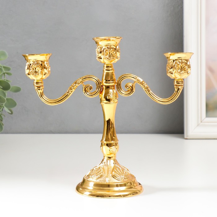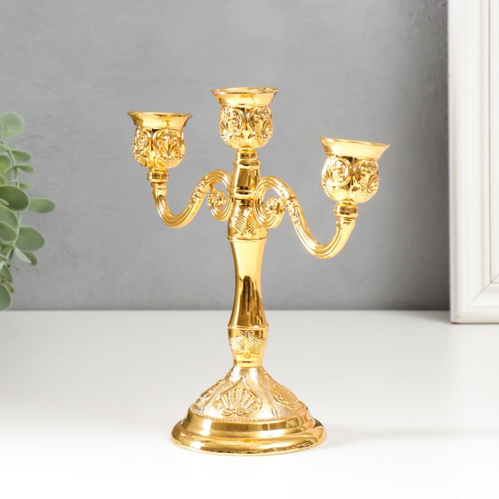 Подсвечник металл на 3 свечи "Резной лист" цвет золото 21х20,5х8,5 см