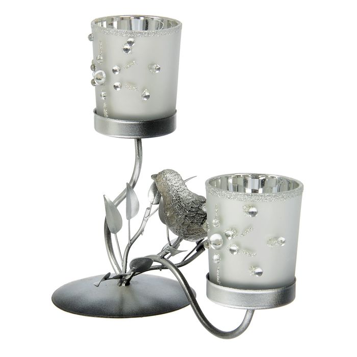Подсвечник "Птица на ветке" 2 свечи МИКС