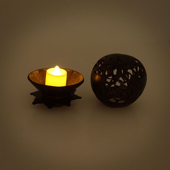 Оригинальный подсвечник резной "Слон", выполненный из натуральных материалов: бамбука и кокоса. Мастера Индонезии создавали эту великолепную композицию вручную, шаг за шагом, кропотливым трудом вырезая лаконичные линии. Представьте, как замечательно в сумраке при свечах будут мерцать томные тени очертаний этого подсвечника.