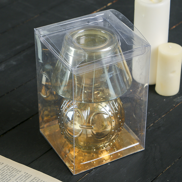 Подсвечник стекло на 1 свечу "Лампа" кремовый жемчуг 19х11,8х11,8 см