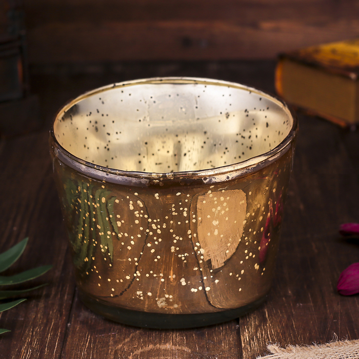 На первый взгляд может показаться, что это простой подсвечник, но, приглядевшись, сразу понимаешь, что это ручная работа. Он создан искусными мастерами-ремесленниками в загадочной Индии. Вы только посмотрите на это необыкновенное стекло, словно внутри затаились маленькие золотники. А с помощью стильного эффекта патины подсвечник обретает нотки изыска и королевской роскоши.