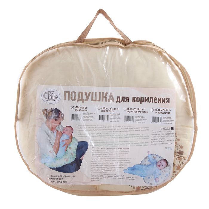 Подушка для кормления в наволочке «Мишка со звездами» предназначена для кормления новорождённого и поддержки ребёнка (в возрасте от полугода) в сидячем положении. Изделие имеет форму подковы и плотно обхватывает талию мамы своими «лапками». На широкой части вы удобно расположите малютку.