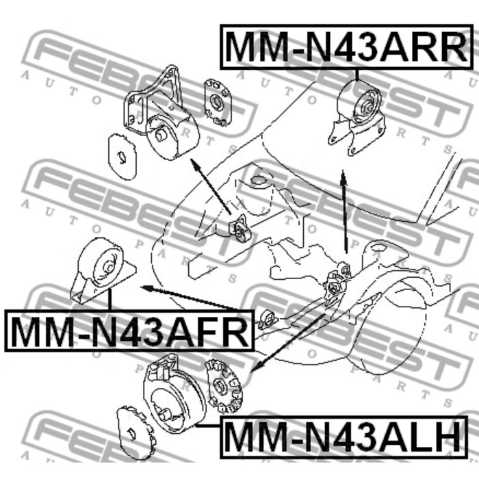 Подушка двигателя левая (гидравлическая) at febest mm-n43alh
