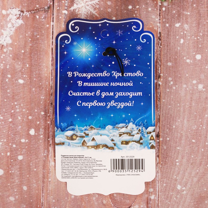 Подвеска ангел на открытке «С Рождеством Христовым!», 6 х 11 см