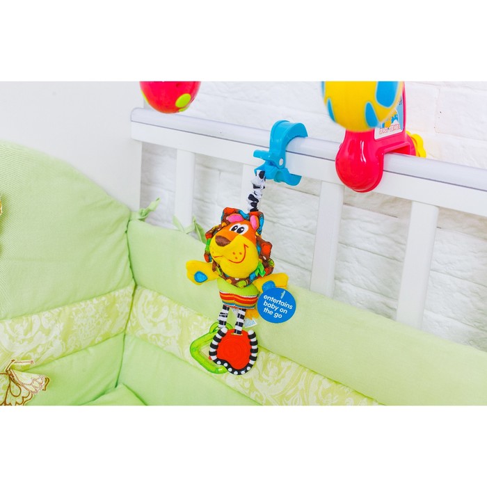 Изделие крепится к кроватке или манежу, его можно подвесить на дуги коврика. Возьмите на прогулку любимую игрушку малыша и зафиксируйте её на ручке автолюльки или коляски.