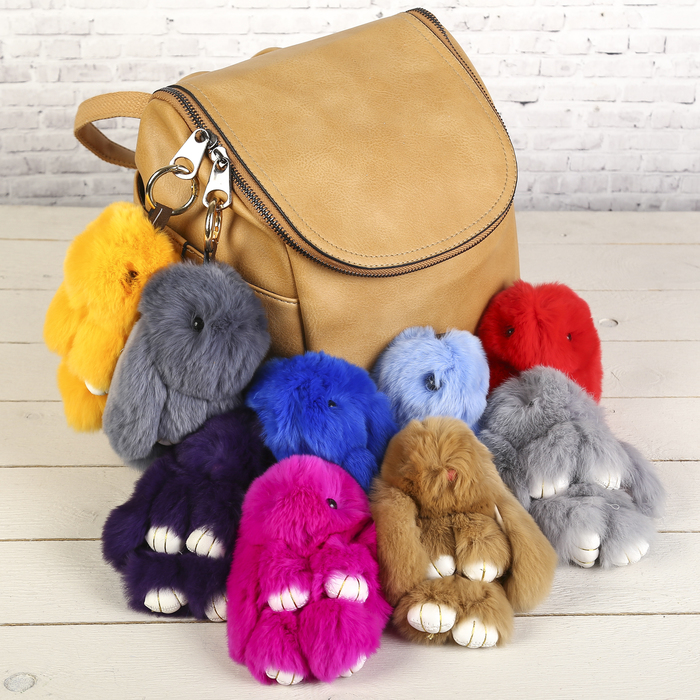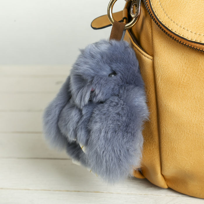 Перед вами милый кролик-пушистик. Этот брелок станет мягким украшением на сумку, рюкзак, пенал или даже маленькой детской игрушкой. Меховой друг поднимет вам настроение или будет приятным подарком близкому человеку.